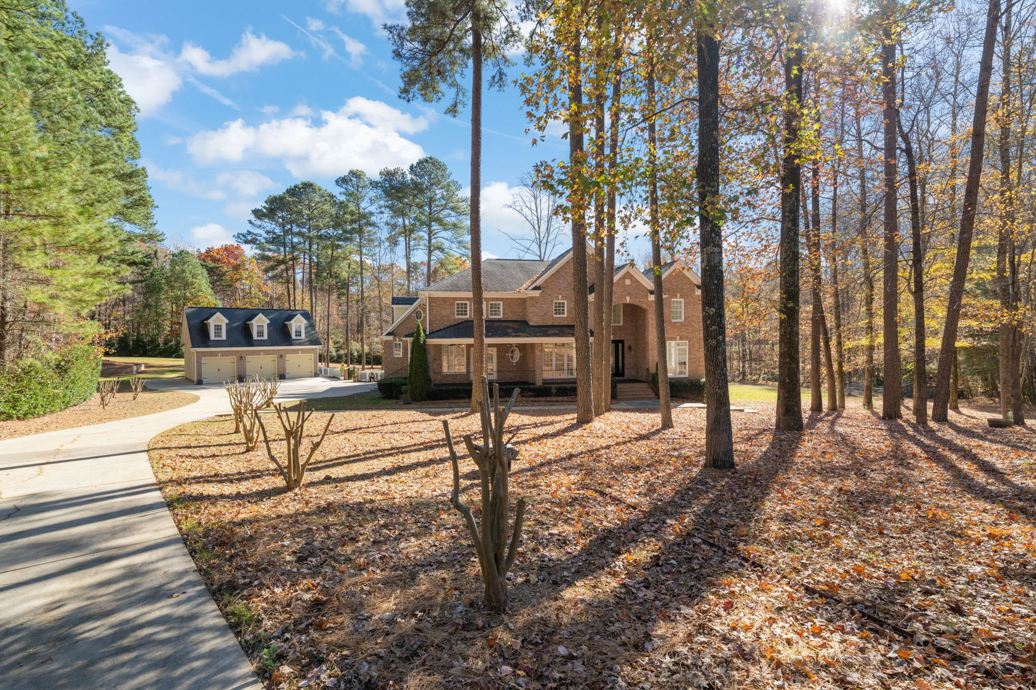 Looking for a private estate with acreage, no HOA, and a separate guest apartment near Falls Lake? This gated, custom-built basement home in Mayfair sits on 3 acres and offers 5,539 sq ft of finished living space, plus a 763 sq ft apartment above a detached three-car garage—perfect for guests, in-laws, or a dedicated home office. The main level features a primary suite, home office, formal living room, and multiple flexible bonus spaces. The septic permit allows for four bedrooms, and recent upgrades include fresh interior paint, new carpet, LVP flooring, and updated kitchen countertops (2024). Outside, enjoy an expansive driveway, five total garage bays (including two attached), and ample room to park an RV, boat, or camper. With no city taxes, this property delivers true modern country living. You’ll also have Spectrum internet, a private well, septic system, and an owned 1,000-gallon propane tank. All just 15 minutes from RDU and Falls Lake’s Rollingview Marina, 20 minutes to RTP, and 5 minutes to Harris Teeter.